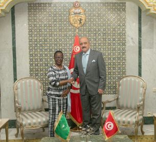 استقبل وزير الشؤون الخارجية والهجرة والتونسيين بالخارج محمد علي النفطي، مساء اليوم الإثنين ،المبعوثة الخاصة للاتحاد الإفريقي للمرأة والأمن والسلم ليبيراتا مولامولا ، التي تزور تونس بمناسبة انعقاد الدورة السادسة للمنتدى الإفريقي رفيع المستوى حول المرأة والسلم والأمن يومي 9 و10 ديسمبر 2025.